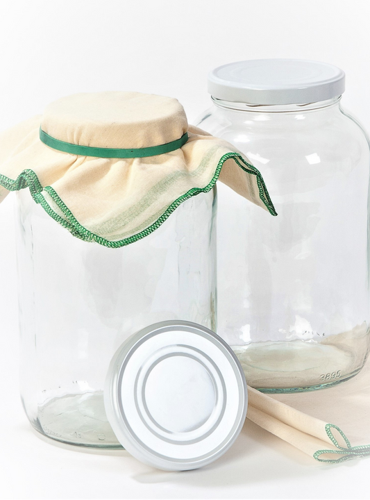 Tarros De Cristal Grandes ( 3,85 litros) con Muselinas, Ideal Para Kombucha, Kefir y Bebidas Fermentadas